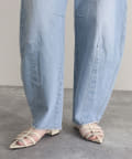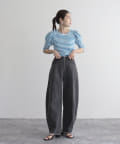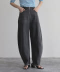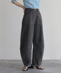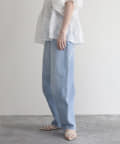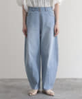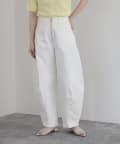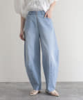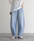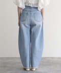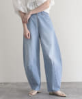 ・膝位置の内側にタックを入れることで生まれる、カーブラインがポイントのデニム